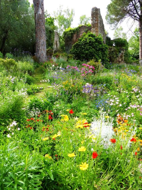 Ninfa è stato trasformato a partire dal 1920 da tre generazioni di donne anglo-americane e l'influenza inglese sul giardino è chiara nel suo stile libero e informale. Le uniche linee rette sono formate dai viali di cipressi che costeggiano le vie del centro storico e da una siepe di lavanda che attraversa il Piazzale della Gloria. Qui abbiamo particolarmente ammirato il giardino roccioso creato da Donna Lelia con le sue abbondanti piantagioni di anemoni, verbene, hebi, salvie, alyssum ed escoltzie.