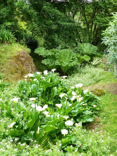 Il giorno della nostra visita la mancanza del sole bene si adattava ai colori sobri del giardino caratterizzato comunque da aiuole ampie e rigogliose che beneficiano dello stesso terreno fertile della vicina Ninfa. Anche in questo giardino l'acqua gioca un ruolo quando scende lungo il pendio ripido del giardino e appare qua e là, sotto forma di una piscina, di un ruscello e di un lago, il tutto collegato da pompe che assicurano il riciclo dell’acqua.