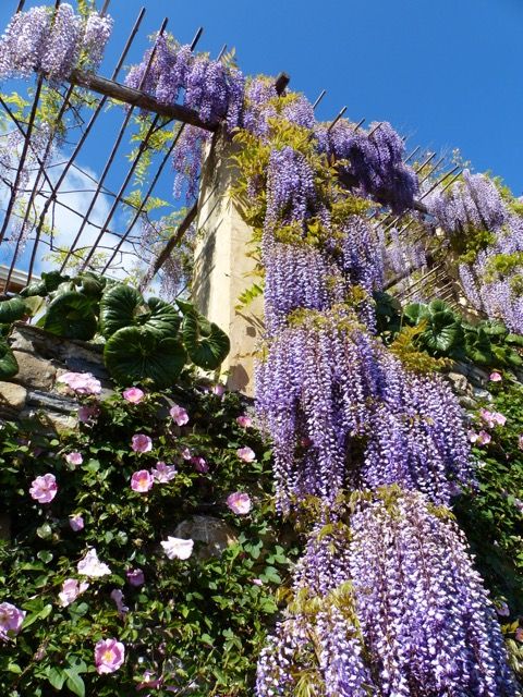 Tutti I giardini visitati erano, infatti in Mentone o nella vicina Ventimiglia ma il primo giorno ci siamo fermata ad Alassio per ammirare le glicini gloriose di Villa La Pergola. La villa fu acquistata nel 1922 da Daniel Hanbury (figlio del fondatore dei Giardini Hanbury) e sua moglie Ruth che insieme hanno creato un giardino splendido con specie native mediterranee e altre più esotiche. L’attrazione principale però rimane la collezione di non meno 28 varietà di glicine. Fino al 1982 (quando morì Ruth) durante la primavera si tenevano delle feste per celebrare la loro fioritura. Nel 2006 la villa e il giardino furono acquistati dalla famiglia Ricci che commissionò a Paolo Pejrone il restauro del giardino per portarlo al suo antico splendore. Oggi il giardino crea lo sfondo perfetto per la villa che è gestita come un hotel esclusivo. La fioritura delle glicini non ci ha deluso!