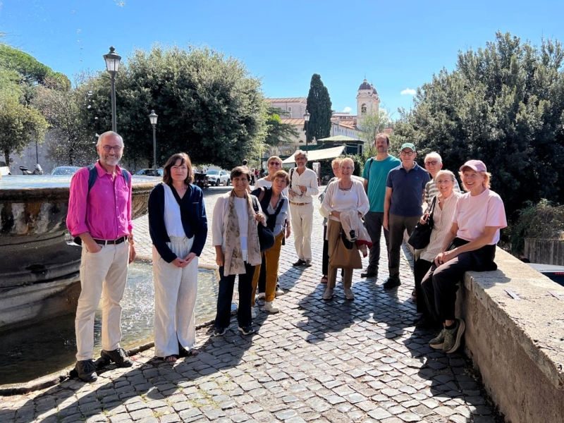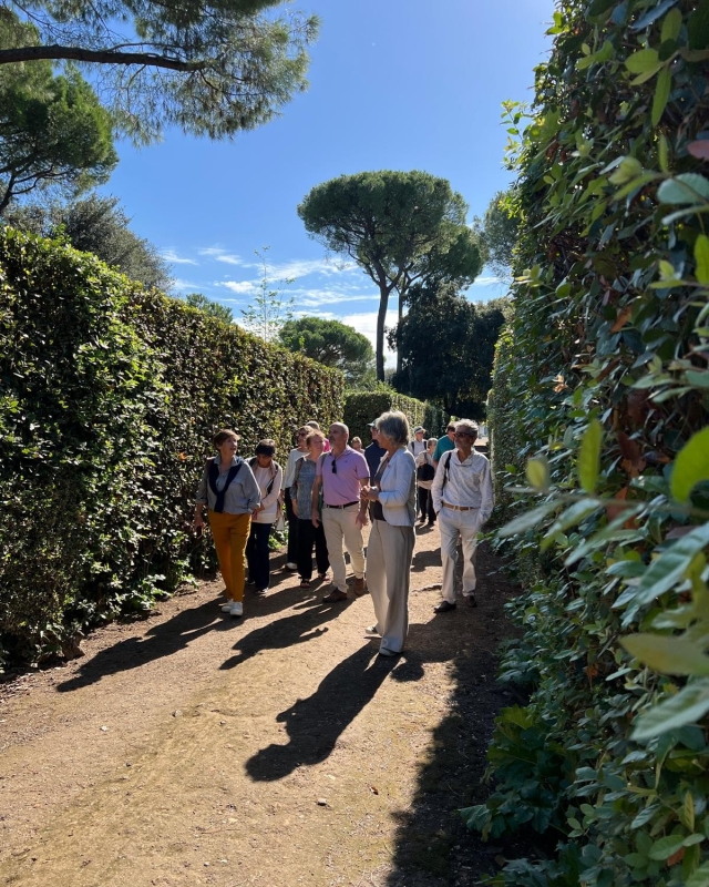 La cittadina, nota soprattutto come residenza estiva dei Papi, si affaccia sul lago Albano. Qui, dopo aver pranzato in un ristorante sul lago, abbiamo visitato il giardino di Villa Barberini, annessa alle pertinenze della S. Sede in Castel Gandolfo dal 1929 con i Patti Lateranensi. I giardini, molto curati, costituiscono il cuore verde delle ville pontificie ed incantano per le meraviglie naturalistiche, botaniche ed archeologiche: sono infatti ben visibili diversi resti della villa dell’imperatore Diocleziano. Abbiamo ammirato il giardino delle magnolie, il viale delle rose, il viale delle erbe aromatiche e quello dei Ninfei, il Piazzale dei Lecci ed il giardino del Belvedere
