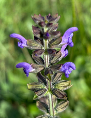 So I posted the photo on the MGS forum hoping someone will be able to help: nothing. I then posted the photo on Plant Idents, a Facebook page, and hey presto back came the answer: Melampyrum nemorosum. It is a parasitic, herbaceous flowering plant in the broomrape family, Orobanchaceae. What looked like blue flowers are new leaves which are blue, turning green as they mature. How unusual is that?